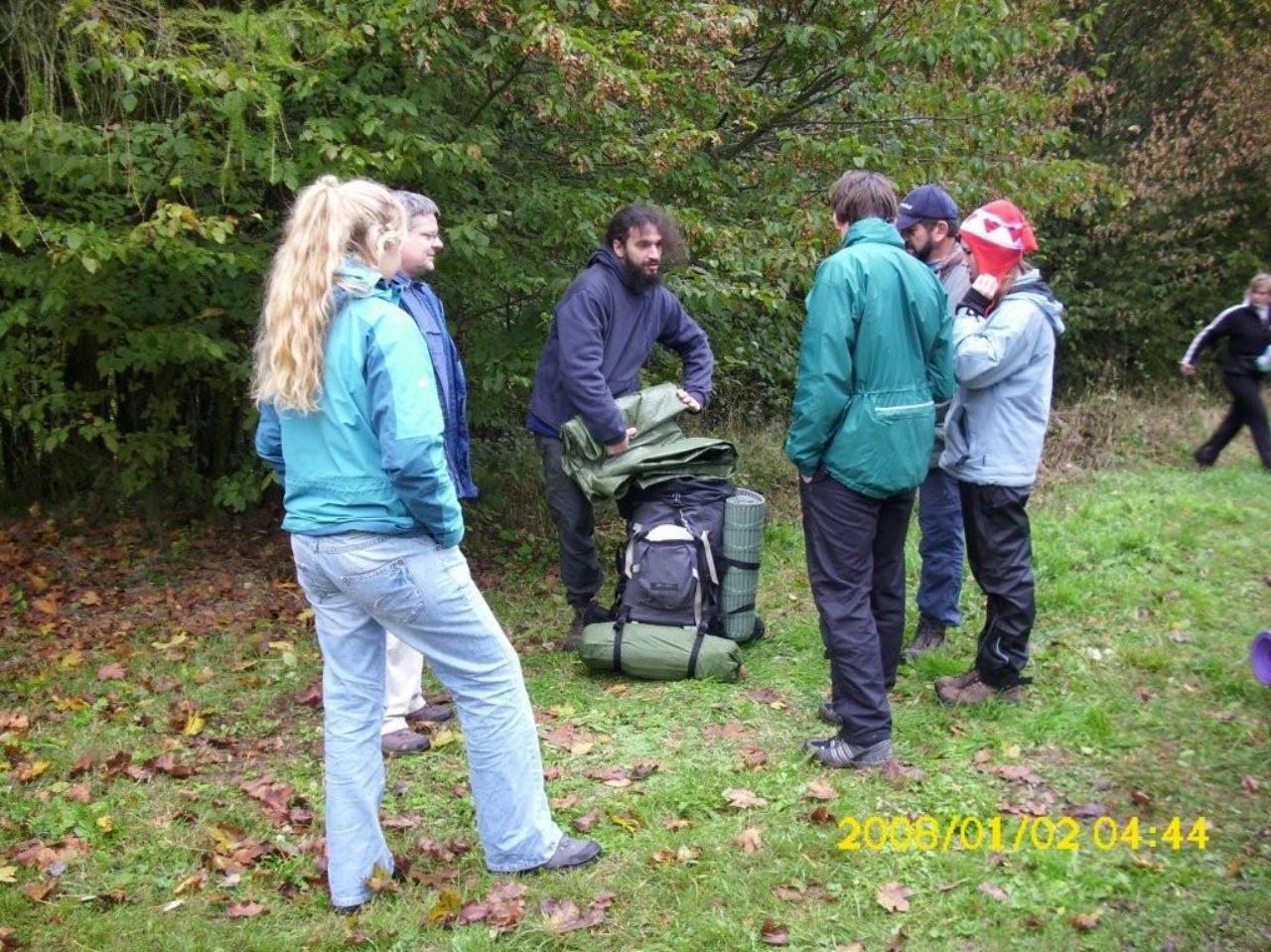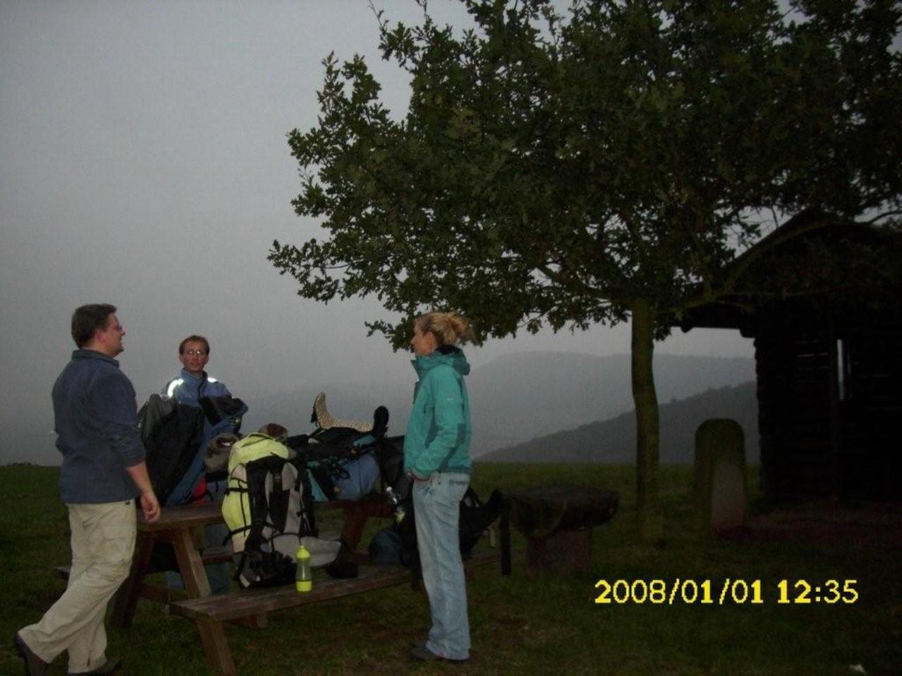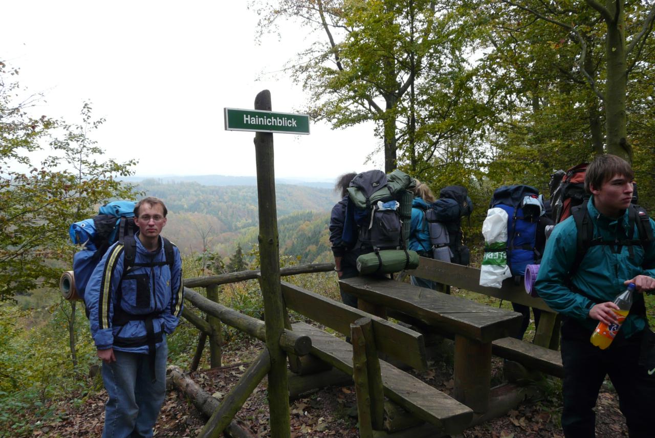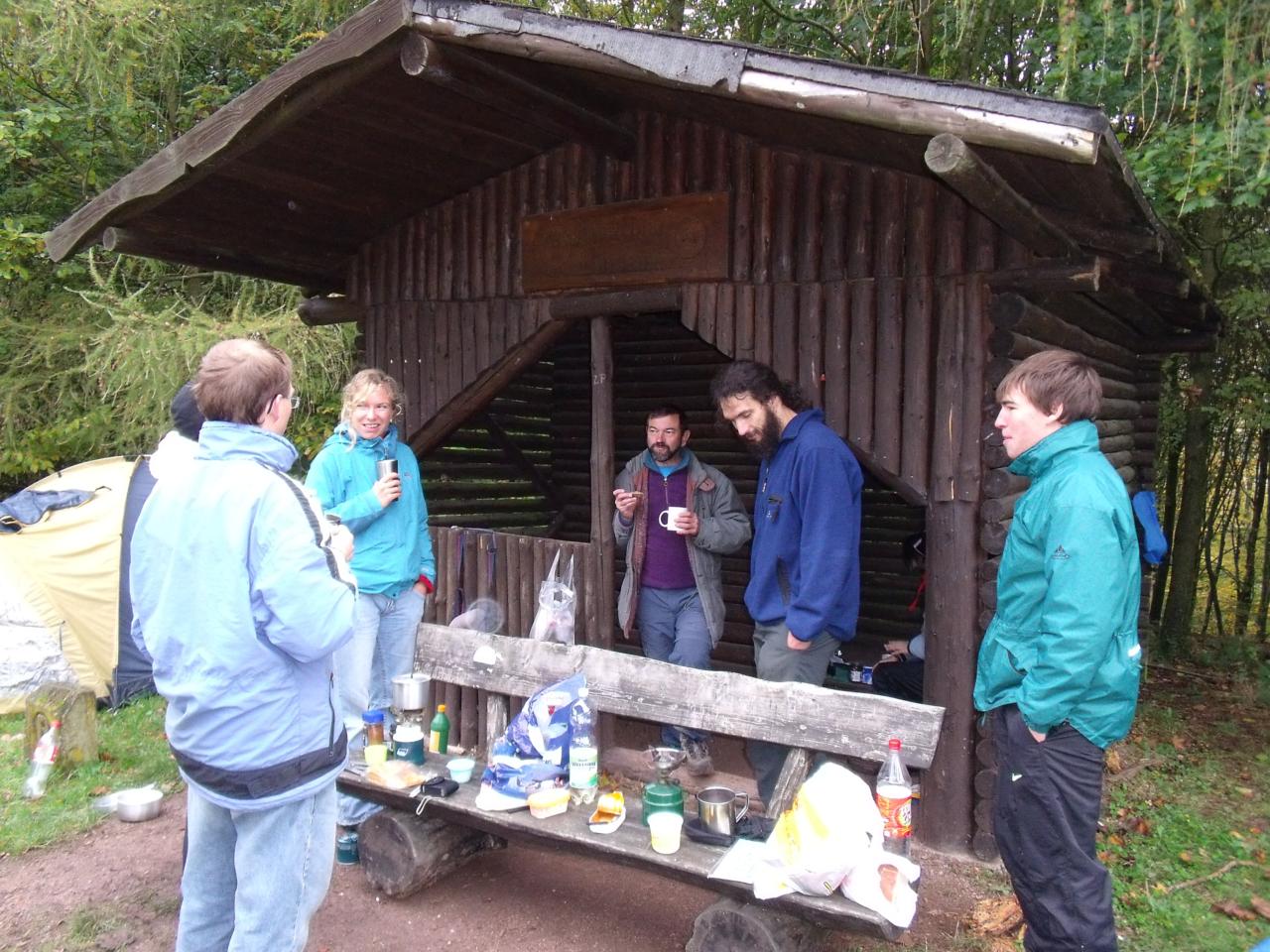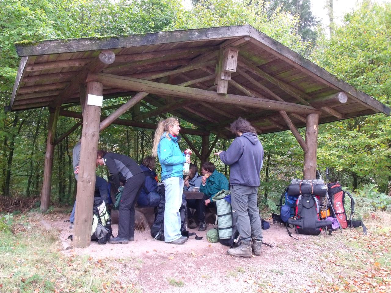 Durch Buchenwälder, vorbei an einer kleinen Ortschaft führte uns der Weg zur Hohen Sonne zum Mittagessen. Ein wenig Kultur durfte natürlich nicht fehlen. Der Vachaer Stein, das Steinkreuz Wilde Sau, sowie herrliche Ausblicke auf den Thüringer Wald waren die Highlights bis zum ersehnten Mittagessen. Die Hohe Sonne - unser erstes Ziel - erreichten wir dann am frühen Nachmittag. Nach einer kleiner Stärkung, trennte sich dann die Gruppe. Ein Teil, Alex, Osama, Sandra und Erik gingen dann bis zur Drachenschlucht. Der Rest setzte sich in Richtung geplantes Nachtlager fort. Nachdem alle an der Hütte angekommen waren, wurde diese erstmal wetterfest gemacht. Diesmal hatten wir sogar eine kleine Feuerstelle. Also ging es in den Wald um Holz zu sammeln. Der Grill wurde angeschmissen und unser Grillmeister Heiko bot uns leckere Thüringer Würstchen und Steak.