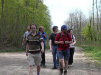 Als aber nach den 3 Stunden gerade mal die Hälfte geschafft war, war allen Teilnehmern klar, dass hier etwas nicht stimmte. Nach einer kleinen Verschnaufpause bei der Gaststätte mit kalten Getränken, aber leider ohne Eis für die tapferen Kinder, (leider war geschlossene Gesellschaft und es gab nur Getränke im Hof) machten wir uns auf den Rückweg. Hendrik mit seinem kleinsten und größten Sohn musste die Tour abbrechen, da es für den Kleinen in der Rückentrage doch etwas zu viel geworden wäre. Nur seine Tochter Emmi mit ihren gerade mal 6 Jahren wollte unbedingt weiter mit uns wandern. So nahmen wir sie mit auf die Rücktour und alle Wanderer konnten es nicht glauben, wie gut Emmi diese Wanderung meisterte. Fast immer lief sie vorne weg und erfreute uns mit ihrer Art. Obwohl auch sie gegen Ende merklich schwächelte, wollte sie sich auf gar keinen Fall tragen lassen und erreichte zwar als letzte aber doch sehr glücklich nach 22 km das Ziel. Nachdem dann die Radwandergruppe auch von ihrer Tour heimgekehrt war, wurde gegrillt und viel erzählt bei einer richtig lauen Sommernacht im April.