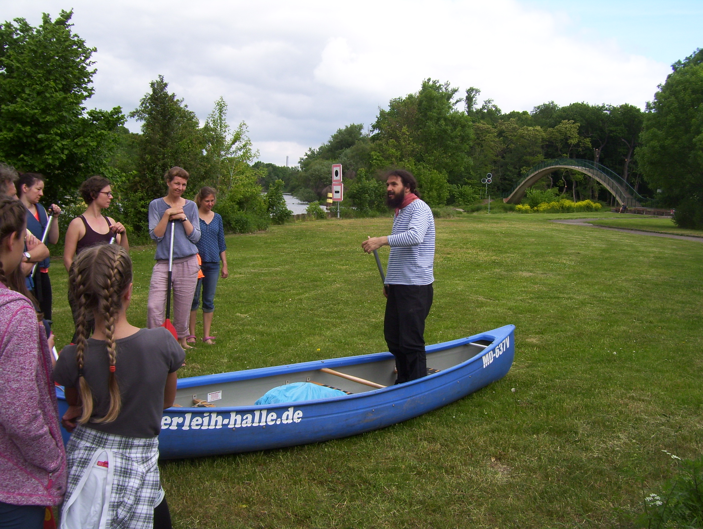 Mit dem Kanu von Halle an der Saale nach Barby an der Elbe (kurz hinter der Saalemündung), das war der Ausflug, den der Erlebnissportverband Apricus e.V. für seine Mitglieder und naturverliebten Gästen am verlängerten Himmelfahrtswochenende anbot. Osama, lang­jähriges Mitglied des Vereins, organisierte und begleitete fachkundig die Kanutour.