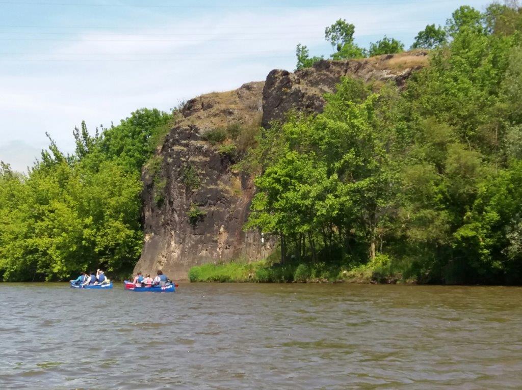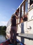 Am Donnerstag, es war Herrentag, ging es los. Dass Männertag war, merkten wir schnell, als wir in der ersten Schleuse mit einigen Booten, besetzt mit feiernden Männer, saßen. Daraus folgte allerdings für unser Boot: eine Seefahrt, die ist lustig, eine Seefahrt, ist feucht-fröhlich. Kurs zu halten, war dann doch nicht so einfach. Zur Mittagspause fanden wir einen idyllischen Anlegeplatz bei Brachwitz. In Brachwitz machten wir einen Halt und erkundeten bei einem Ausflug mit Osama, der auch Geologe ist, die Brachwitzer Alpen.