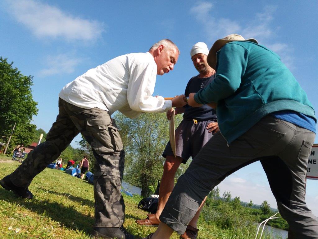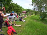 Am Abend des 24. Mai trafen sich gut 30 Freizeit- und Sportbe­geisterte auf dem Campingplatz Nordbad in Halle. Einige kannten sich bereits von früheren Touren. Andere, wie ich, waren das erste Mal dabei. Aber allein blieb ich nicht lange. Die gemischte Grup­pe aus Männern, Frauen und Kindern nahm mich offen auf. Natur und Sport verbindet eben! Schnell fand ich meine beiden Paddelkollegen...