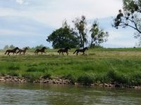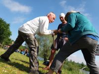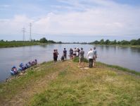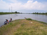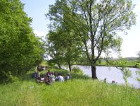 Am Nachmittag hieß es wieder: an die Paddel. Wir waren im 3er Kanu mit Stechpaddeln unterwegs. Jeder der drei Kanuten hat ein Paddel. Aber am dritten Tag der Tour fanden wir einen guten Rhythmus. Es ging von Bernburg nach Calbe - die kürzeste Tagesstrecke der Tour. Die Landschaft war wieder wunderschön. Ab und an trafen wir andere Kanuten, Motorboote und Angler. Das Gefühl von Freiheit, Entspannung, Genuss; es ist kaum in Worte zu fassen. In Calbe am Campingplatz gab es zur Nacht natürlich wieder ein Lagerfeuer. Dieses Mal begeisterten die Kinder mit einem Lagerfeuerspiel. Ein paar von uns, vor allem die Berliner, schauten bei einer Jugendweihe im anschließenden Vereinshaus vorbei. Die feiernden Eltern empfingen uns begeistert und animierten uns zum bleiben und tanzen.
